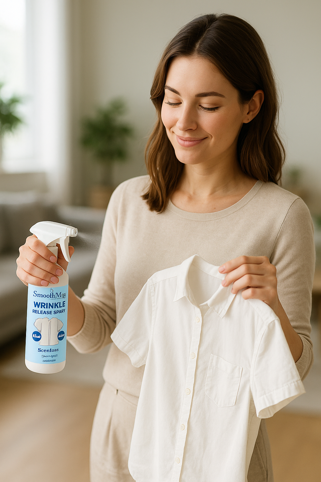 No — SmoothMist™ is scent-free, residue-free, and safe on all common fabrics (cotton, polyester, blends, wool, and more). It’s designed to refresh your clothes, not harm them.